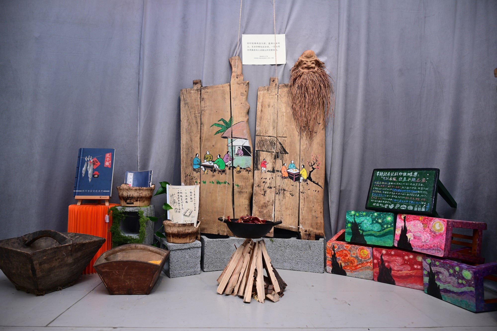 时光之味,同样存在一间餐饮企业的创业史中——此次展览得到了成都本地餐饮企业“孔干饭”的支持。自从今年3月,孔干饭加入可持续“李”想计划以来,它已经成为了李锦记的挚友,在打造有意思、有温度的厨房共创道路上携手并进。展览中,孔干饭提供了旧时处理稻米的农具、烹饪用的锅灶。经过李锦记希望厨师的旧物打散、重组修复,农具变成装饰门板,锅灶也有了新的表达方式,“希望能通过这些厨房旧物的展示,让更多人了解到厨房中蕴含的文化:它不仅仅是炒菜做饭的场域,更是中国人含蓄情感表达的出口。”