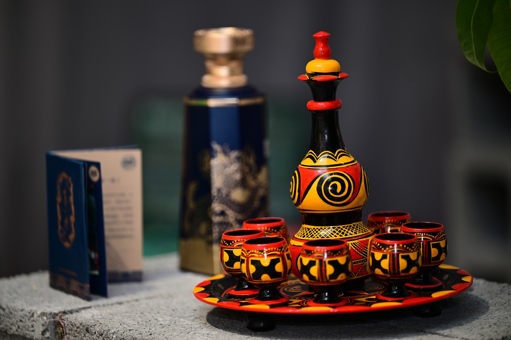 中国人的餐桌上,少不了酒。这次展览中的彝族酒具也为小小的几平米空间中增添了一抹民族风元素:红色、黑色、黄色相间,彝族的图案,立在中间的酒壶,围在旁边的一圈酒杯,“这是彝族同胞对餐桌的表达,也是让世界认识彝族厨房百态的载体。”李锦记希望厨师沙贵发来自四川凉山彝族自治州,是一名地地道道的彝族小伙子,作为此次展览的讲解志愿者,他也向公众科普了关于彝族厨房的故事。