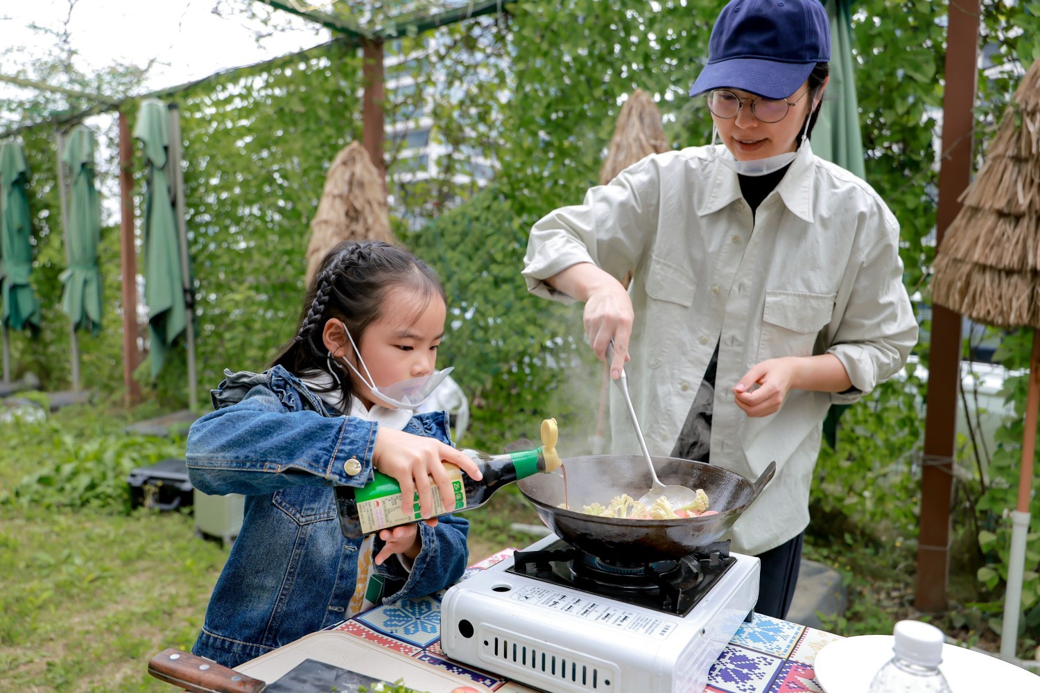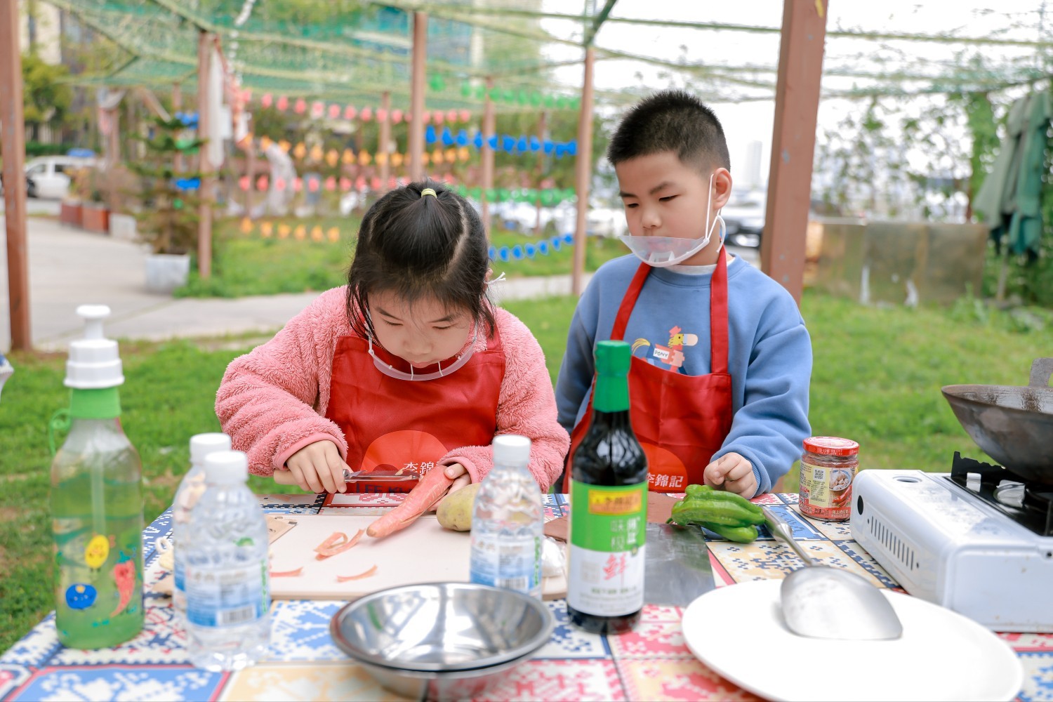 不仅如此,在烹饪过程中产生的“厨余垃圾”,也能通过一些环保小巧思变废为宝。“像我们削下来的土豆皮、胡萝卜皮,加上废弃的白糖,适量的水,摇均匀后静待成为环保酵素。”在协助孩子们烹饪的李锦记希望厨师沙贵发解释,环保酵素日后也可以成为清洁液、植物的营养液,形成循环可持续。